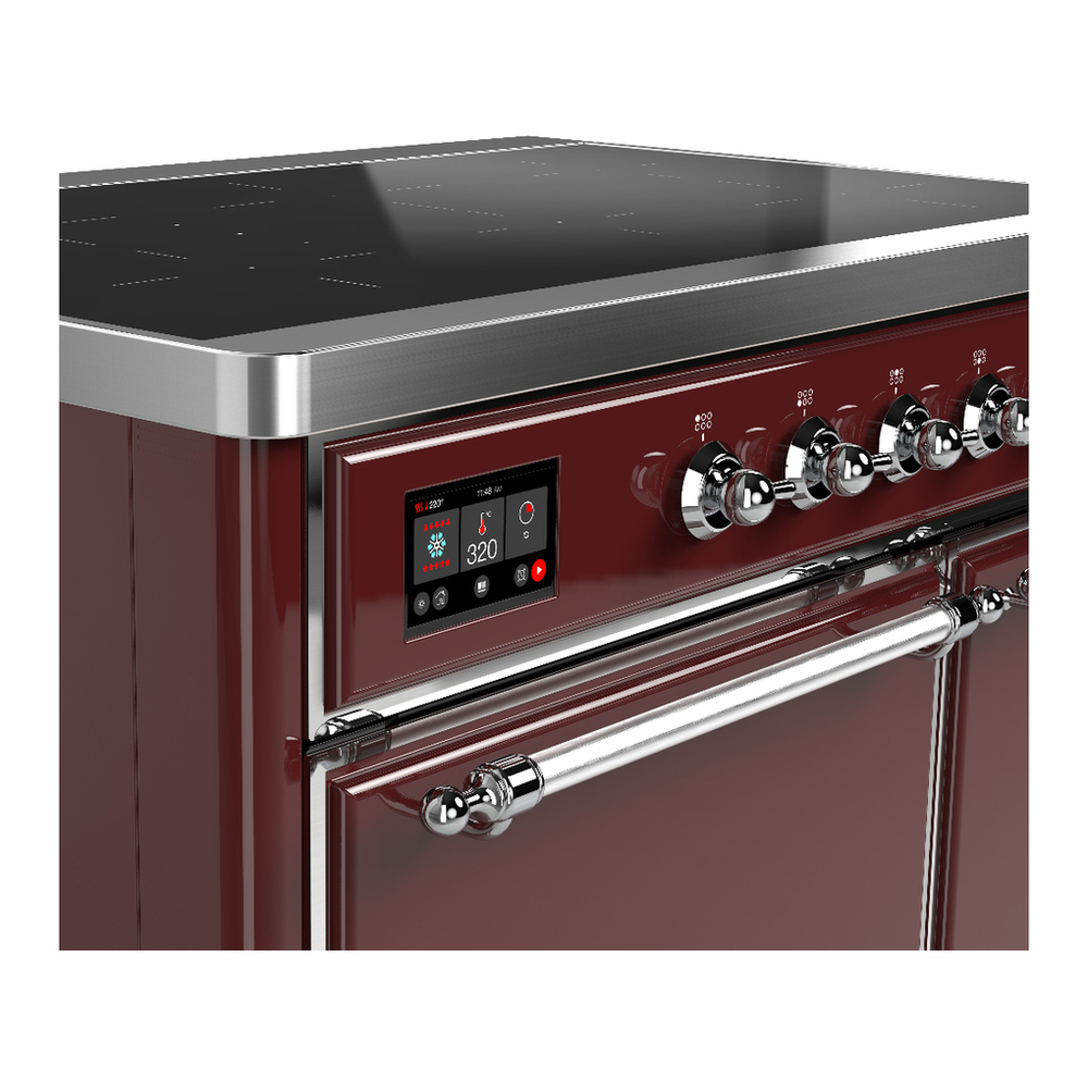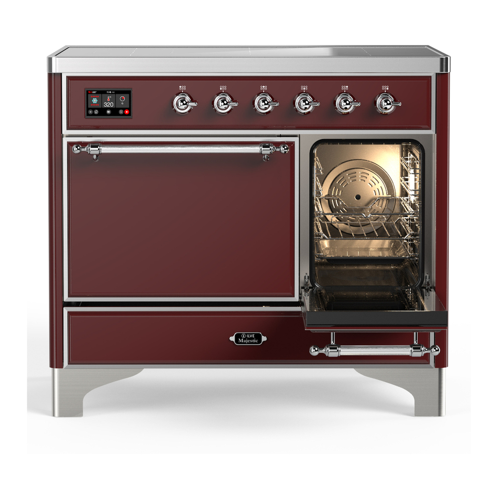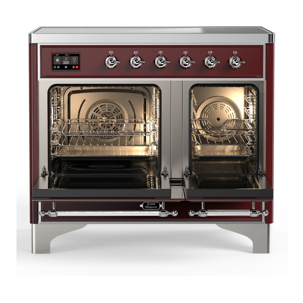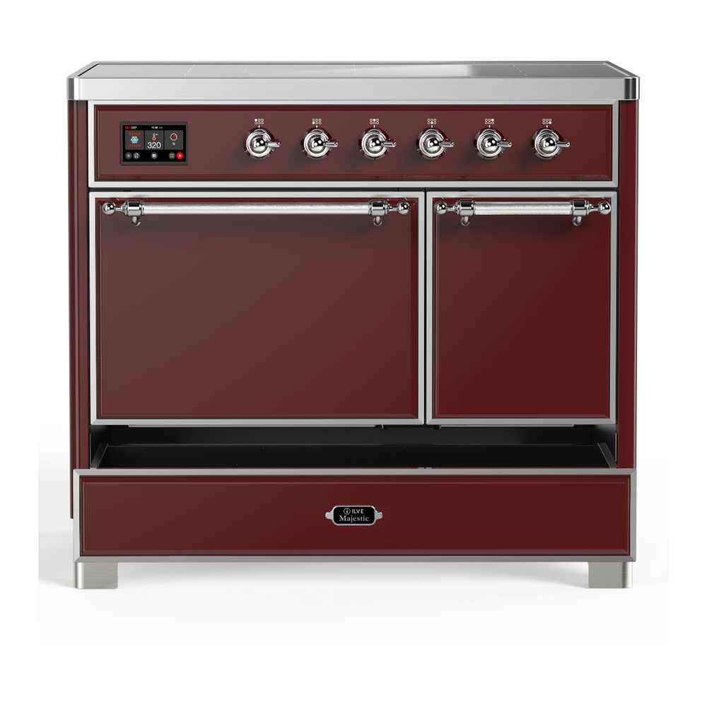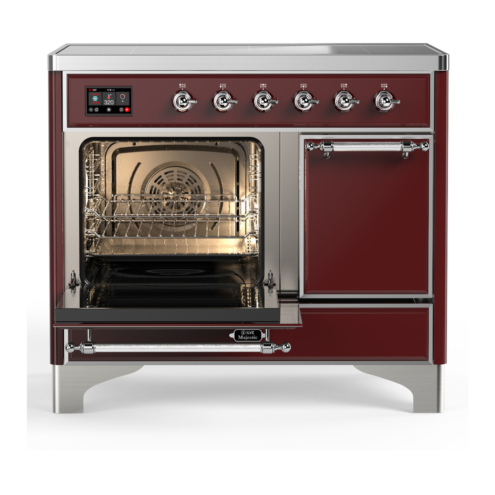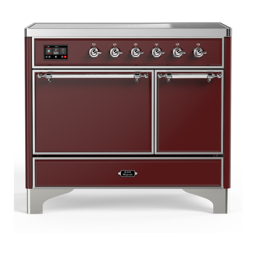 ILVE UMDIB40QNR3BUC Majestic III 40 inch Induction Range with 6 Elements, 3.82 cu. ft. Total Oven Capacity (Solid Door, Burgundy, Chrome)