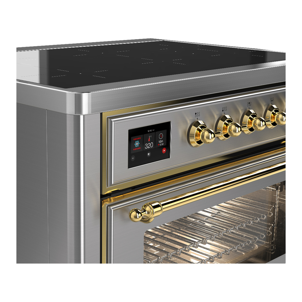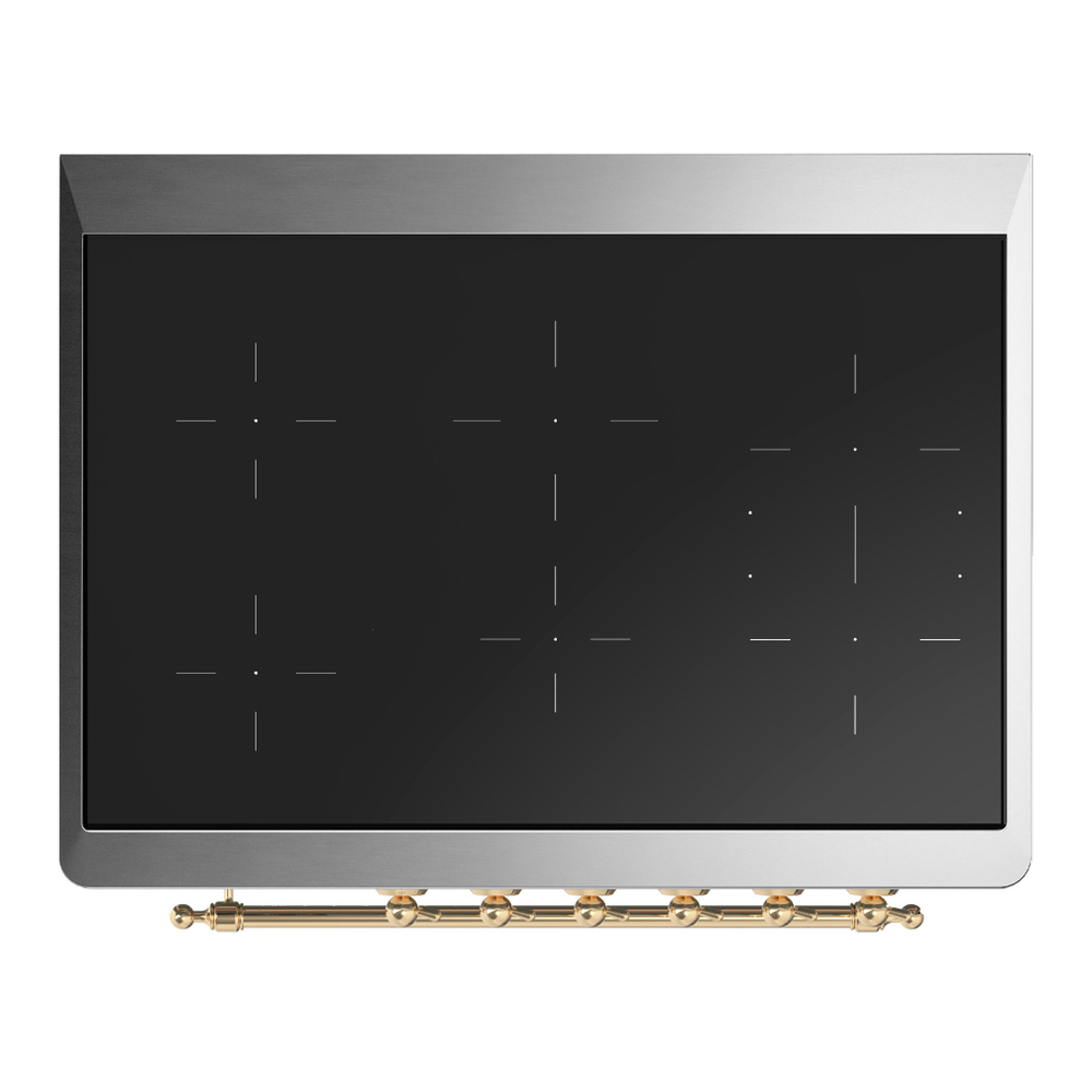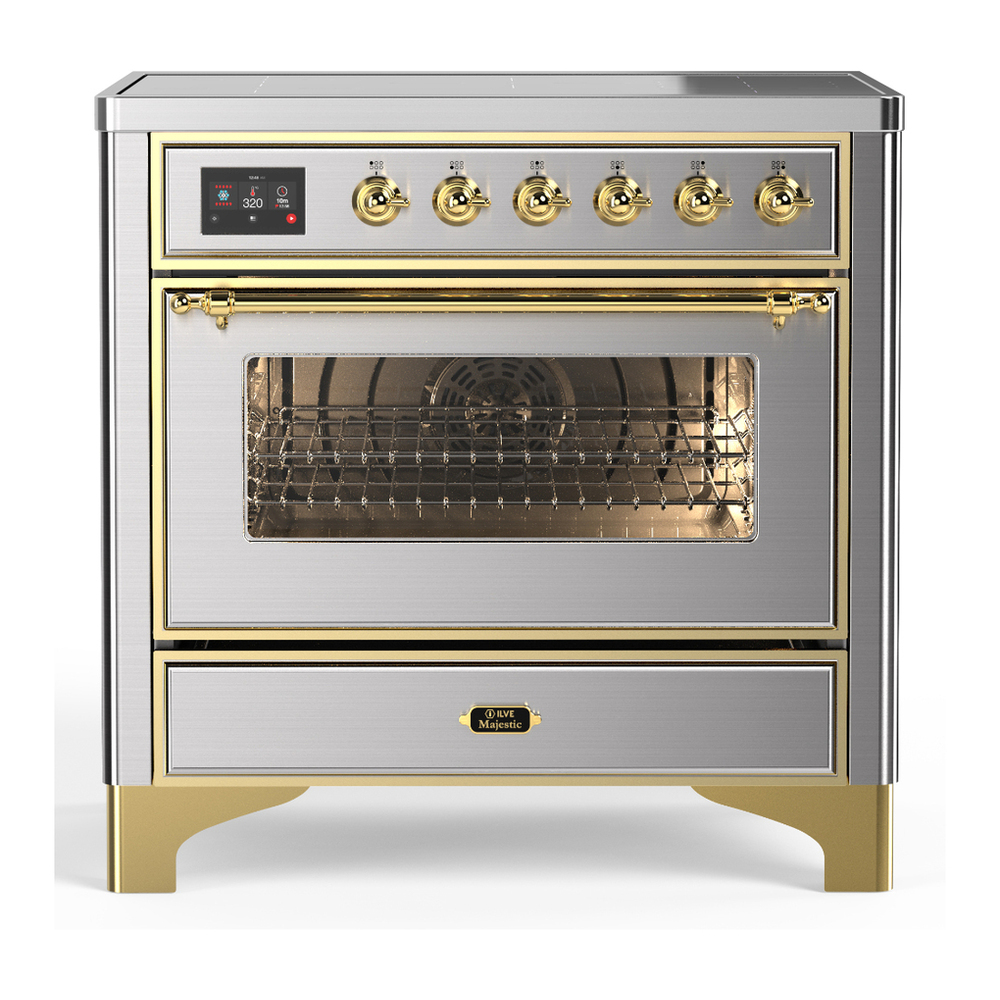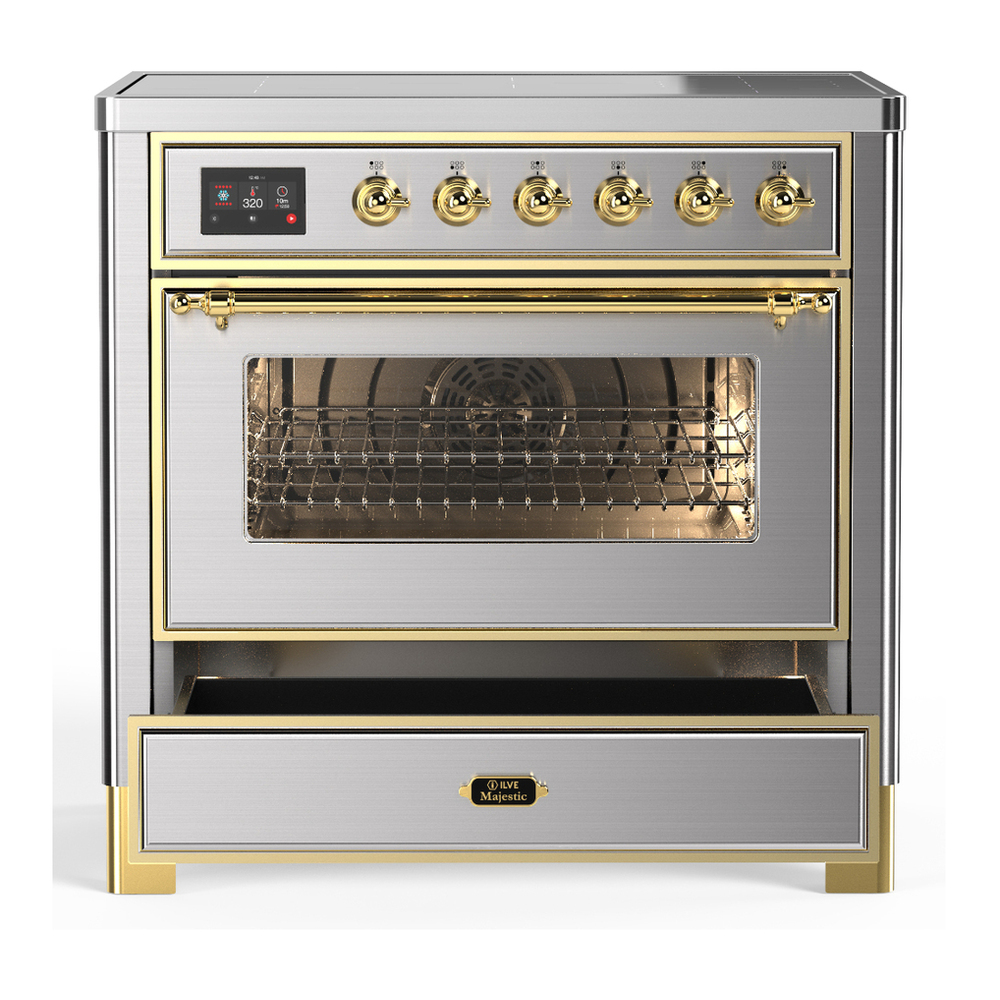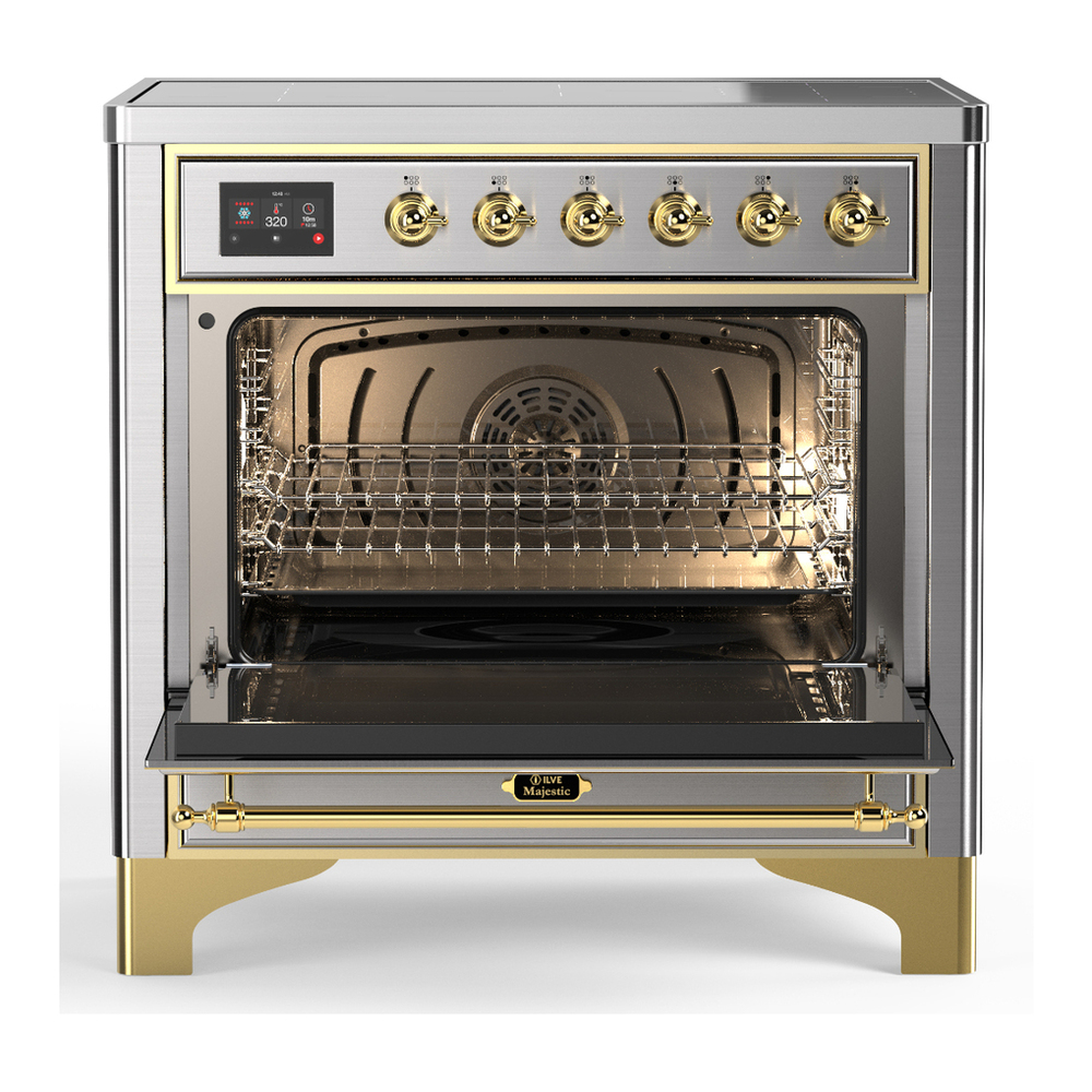 ILVE UMIB36NR3SSG Majestic III 36 inch Induction Range with 6 Elements, 3.5 cu. ft. Total Oven Capacity (Triple Glass Door, Stainless Steel, Brass)