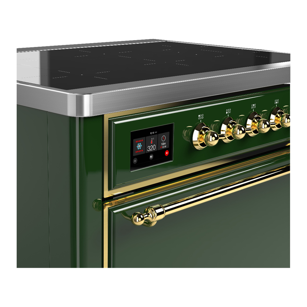 ILVE UMIB36QNR3EGG Majestic III 36 inch Induction Range with 6 Elements, 3.5 cu. ft. Total Oven Capacity (Solid Door, Emerald Green, Brass)