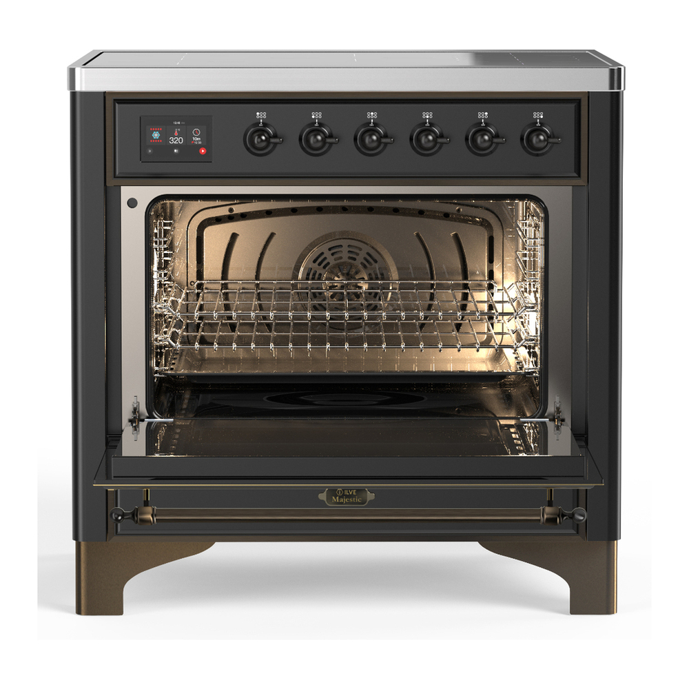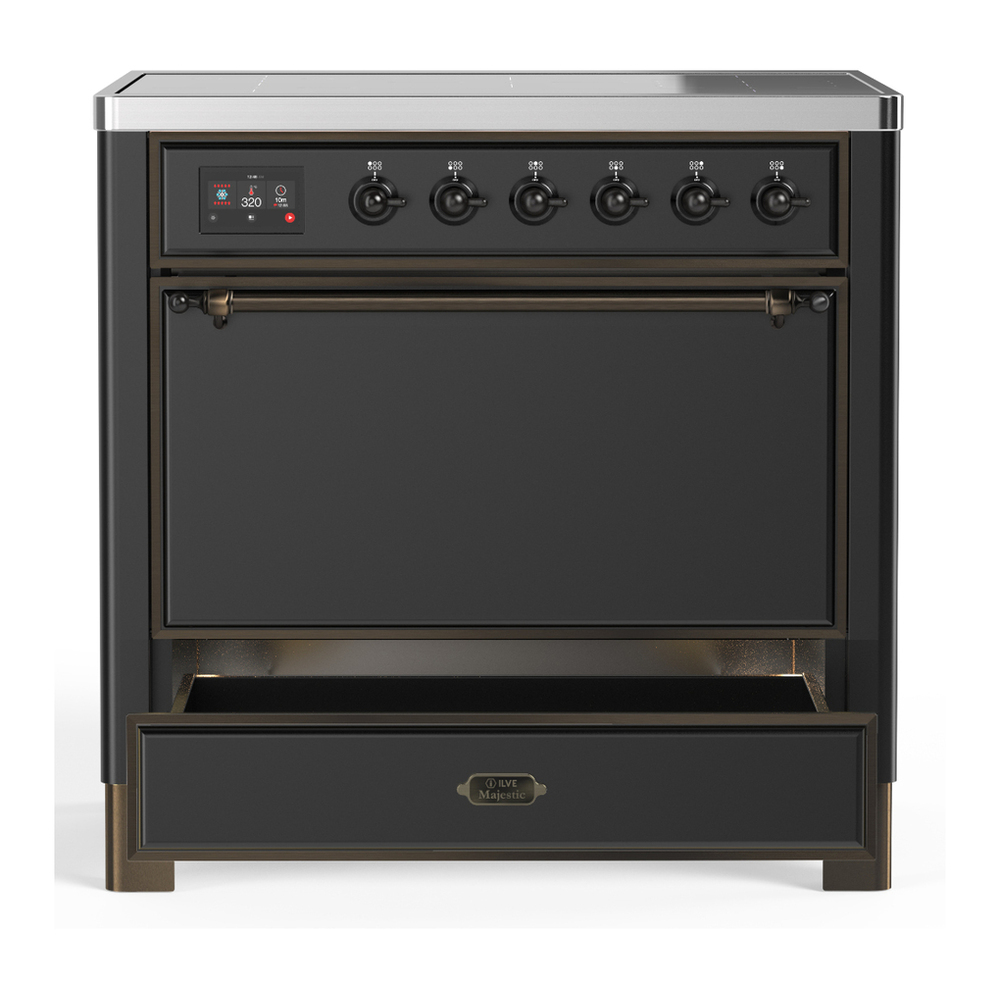 ILVE UMIB36QNR3MGB Majestic III 36 inch Induction Range with 6 Elements, 3.5 cu. ft. Total Oven Capacity (Solid Door, Graphite Matte, Burnished)