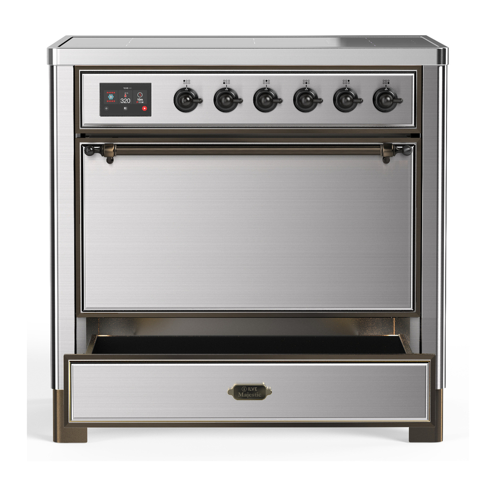 ILVE UMIB36QNR3SSB Majestic III 36 inch Induction Range with 6 Elements, 3.5 cu. ft. Total Oven Capacity (Solid Door, Stainless Steel, Burnished)
