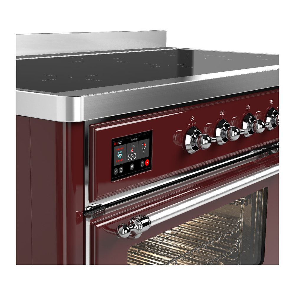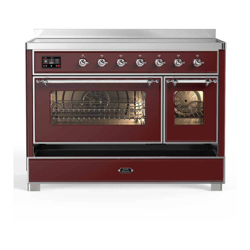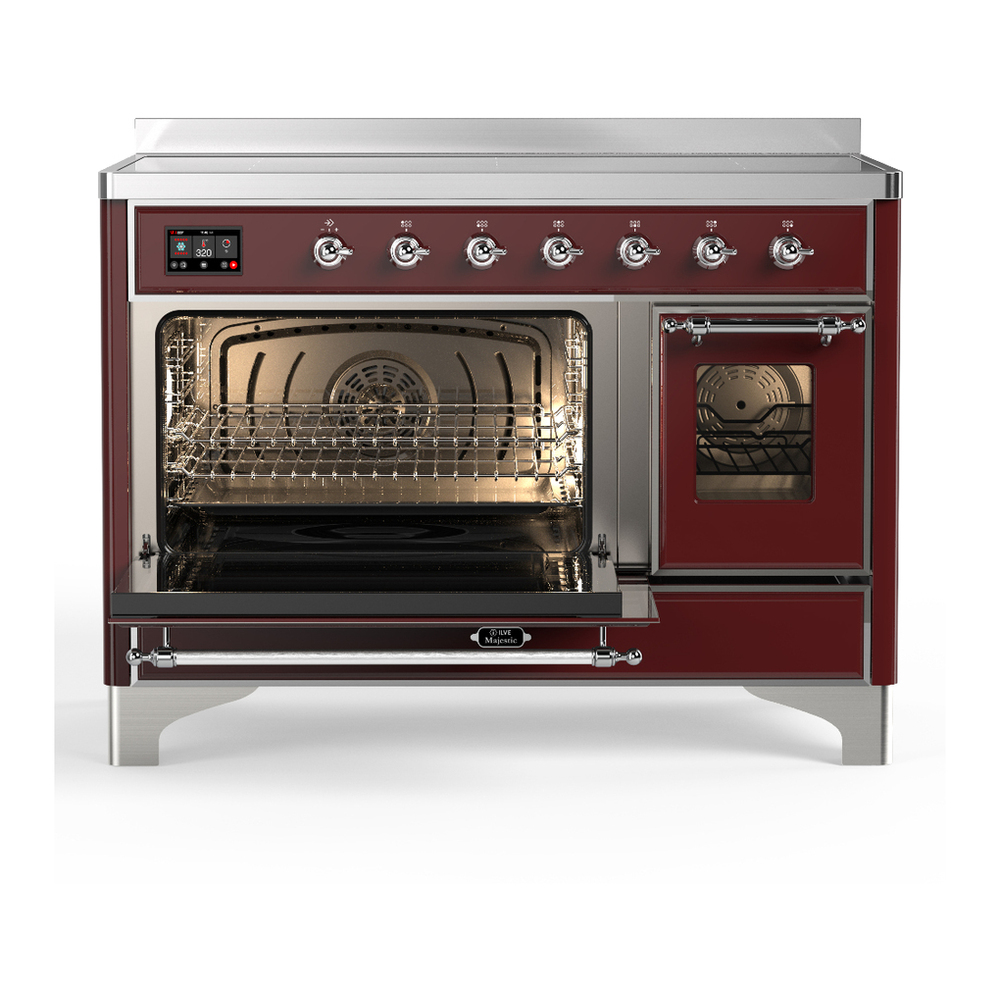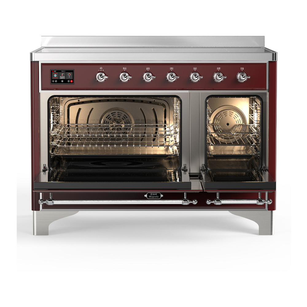 ILVE UMIB48NR3BUC Majestic III 48 inch Induction Range with 6 Elements, 5.02 cu. ft. Total Oven Capacity (Triple Glass Door, Burgundy, Chrome)