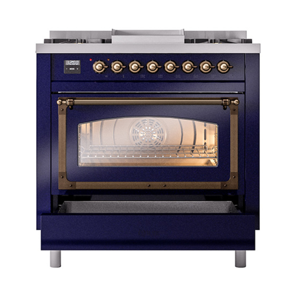 Nostalgie range cookers integrate highly professional technologies and excellent materials with a classic style that is always inspiring. Undisputed protagonists of the kitchen, they offer a complete choice of sizes (from 30 to 60 inches) and various configurations: you can choose the flush-top induction up to 6 cooking zones with bridge function for 48 inches version, single or double oven, standard colors or RAL colors on request, various finishes and accessories. Only available as an option for the Nostalgie collection, Noblesse frames are more than just a detail: they are a fine design feature that frames the front panels, matching the metallic finishes of the handles and knobs. The blind door inspired by the past is another option that elegantly enriches the style of Nostalgie.