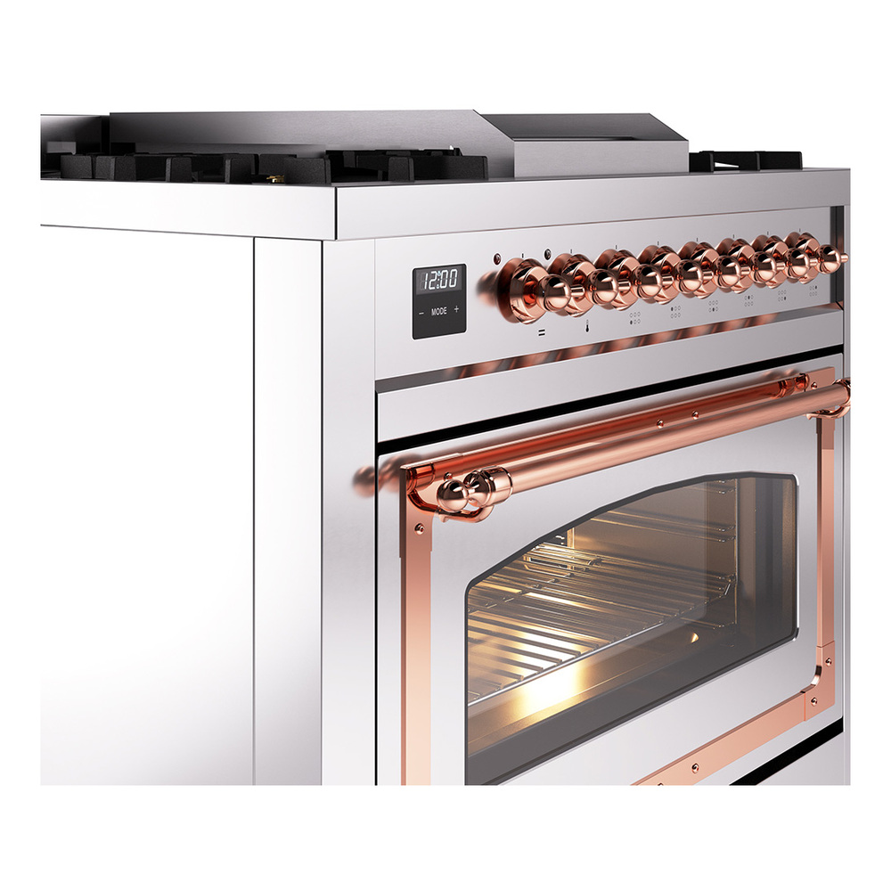 Nostalgie range cookers integrate highly professional technologies and excellent materials with a classic style that is always inspiring. Undisputed protagonists of the kitchen, they offer a complete choice of sizes (from 30 to 60 inches) and various configurations: you can choose the flush-top induction up to 6 cooking zones with bridge function for 48 inches version, single or double oven, standard colors or RAL colors on request, various finishes and accessories. Only available as an option for the Nostalgie collection, Noblesse frames are more than just a detail: they are a fine design feature that frames the front panels, matching the metallic finishes of the handles and knobs. The blind door inspired by the past is another option that elegantly enriches the style of Nostalgie.