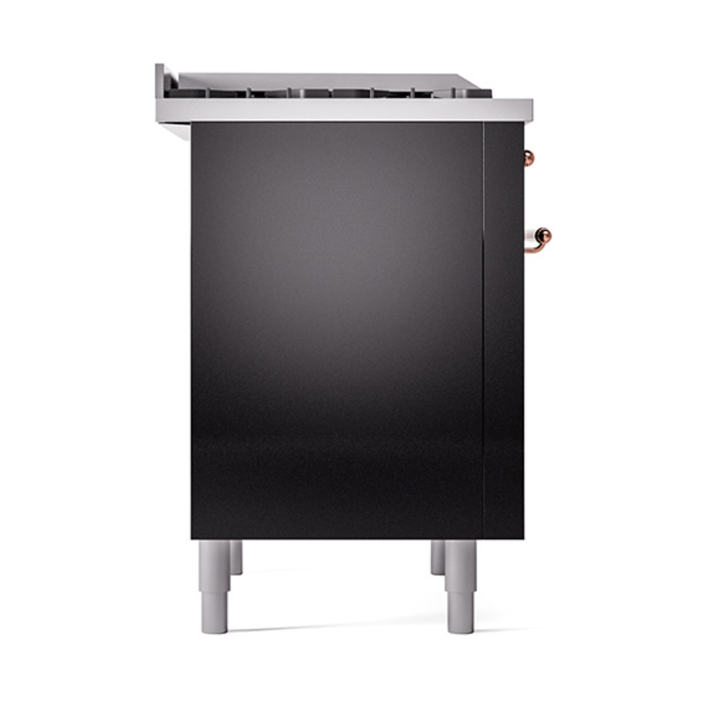 ILVE UN36FQNMPBKP Nostalgie II Noblesse 36 inch Dual Fuel Range with 6 Burners and Griddle (Natural Gas, Solid Door, Glossy Black, Copper)