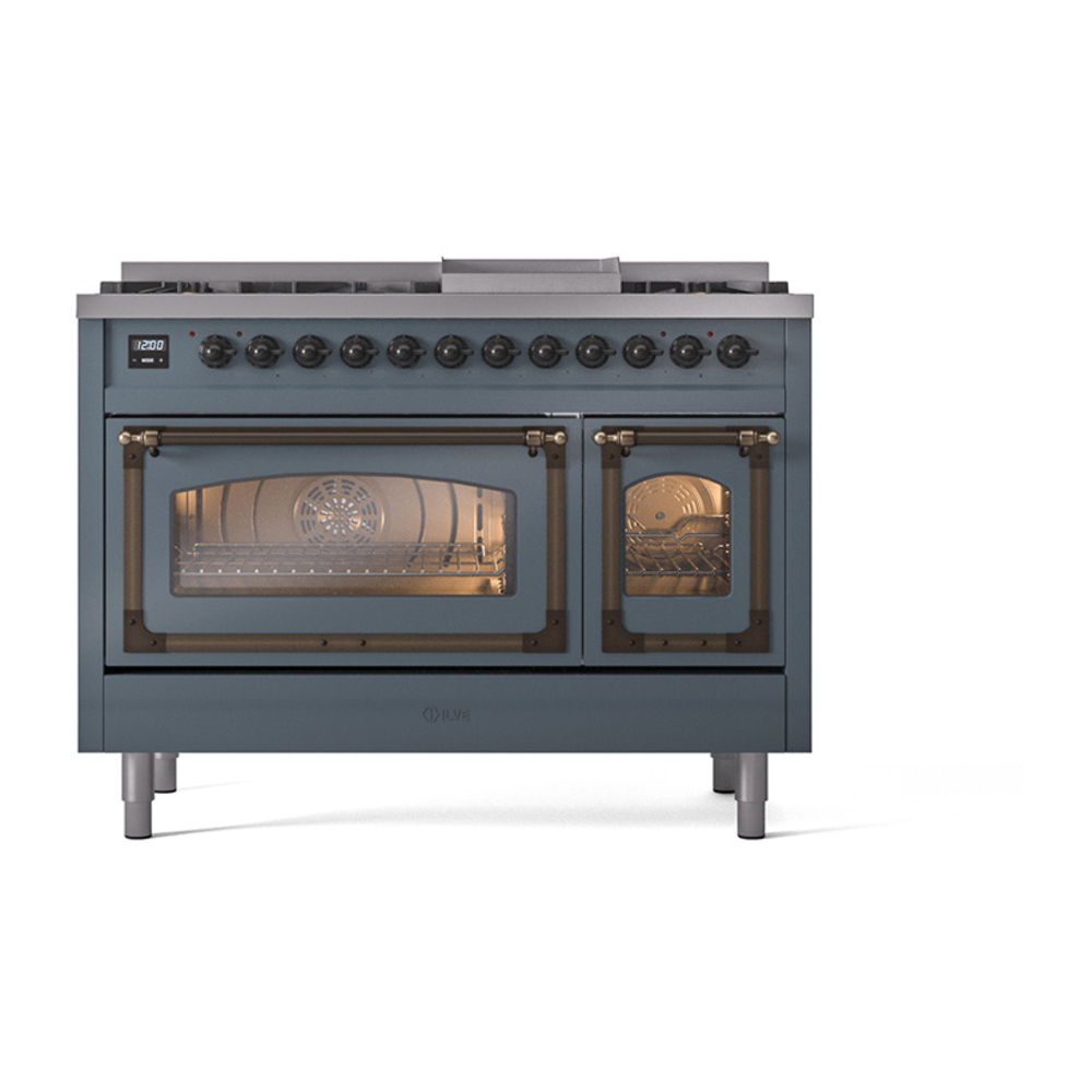 Nostalgie range cookers integrate highly professional technologies and excellent materials with a classic style that is always inspiring. Undisputed protagonists of the kitchen, they offer a complete choice of sizes (from 30 to 60 inches) and various configurations: you can choose the flush-top induction up to 6 cooking zones with bridge function for 48 inches version, single or double oven, standard colors or RAL colors on request, various finishes and accessories. Only available as an option for the Nostalgie collection, Noblesse frames are more than just a detail: they are a fine design feature that frames the front panels, matching the metallic finishes of the handles and knobs. The blind door inspired by the past is another option that elegantly enriches the style of Nostalgie.