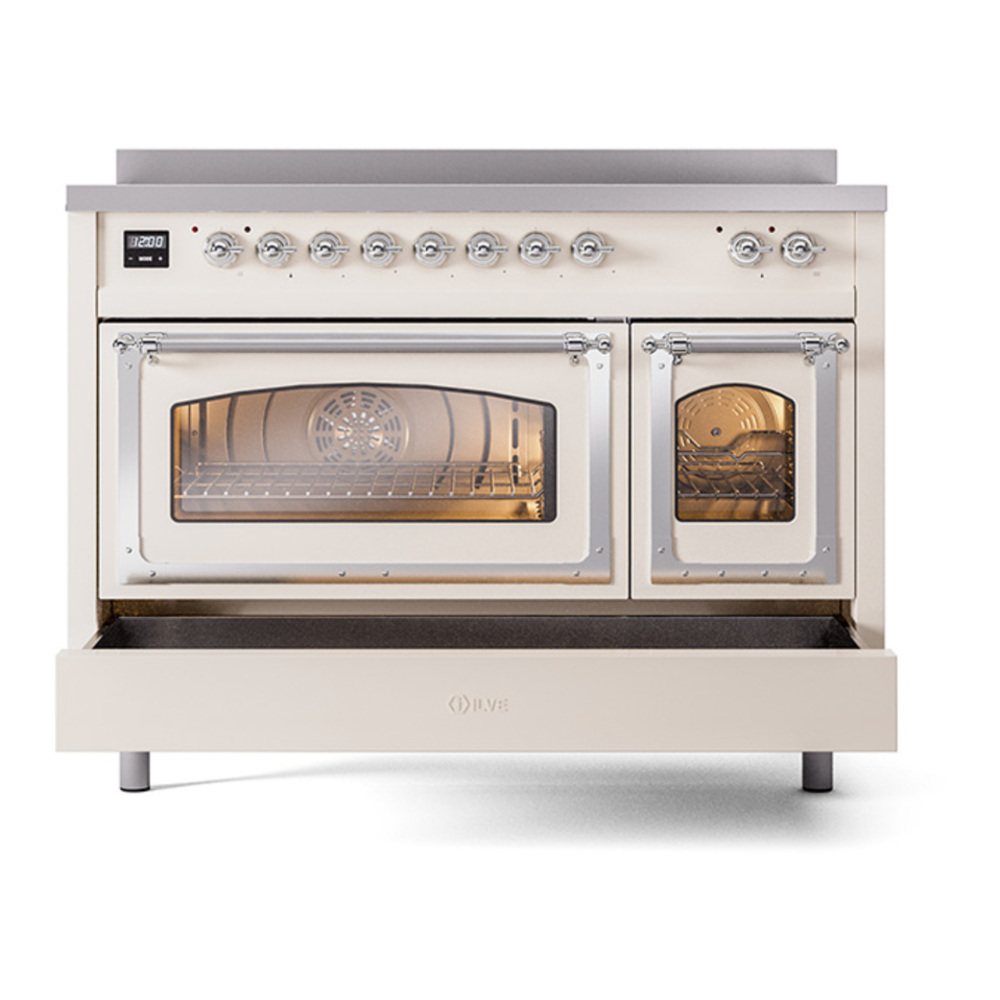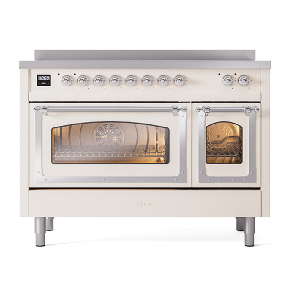 ILVE UNI486NMPAWC Nostalgie II Noblesse 48 inch Induction Range with 6 Elements (Triple Glass Door, Antique White, Chrome)