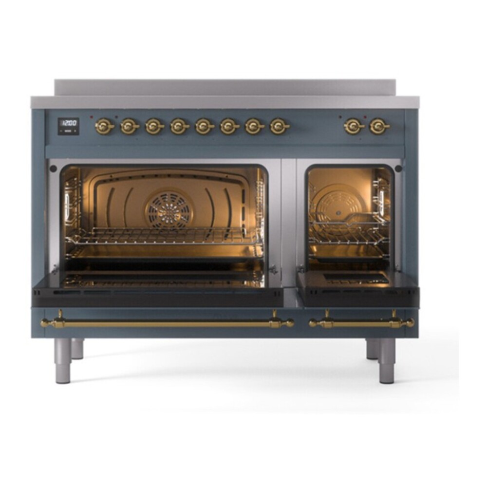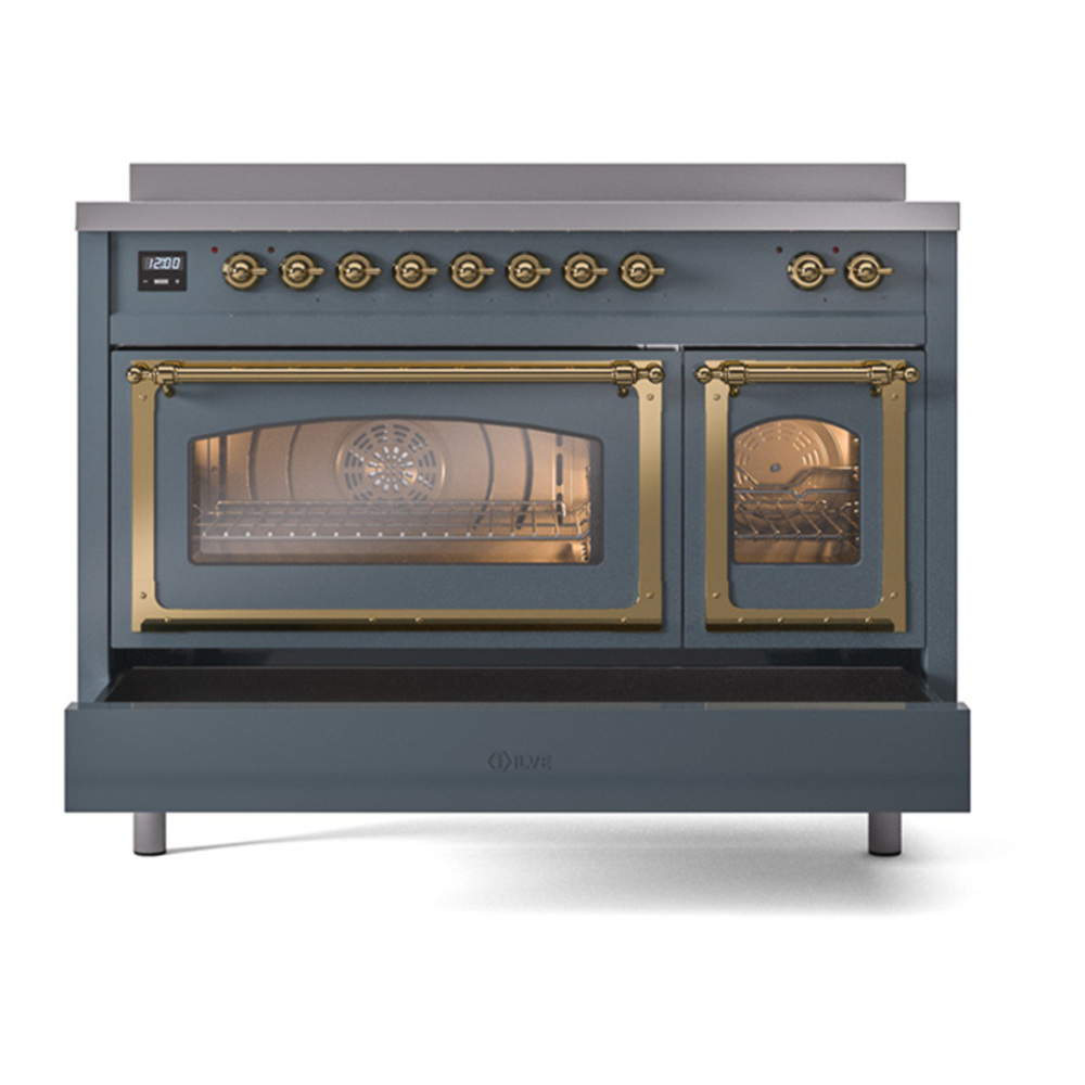 Nostalgie range cookers integrate highly professional technologies and excellent materials with a classic style that is always inspiring. Undisputed protagonists of the kitchen, they offer a complete choice of sizes (from 30 to 60 inches) and various configurations: you can choose the flush-top induction up to 6 cooking zones with bridge function for 48 inches version, single or double oven, standard colors or RAL colors on request, various finishes and accessories. Only available as an option for the Nostalgie collection, Noblesse frames are more than just a detail: they are a fine design feature that frames the front panels, matching the metallic finishes of the handles and knobs. The blind door inspired by the past is another option that elegantly enriches the style of Nostalgie.
