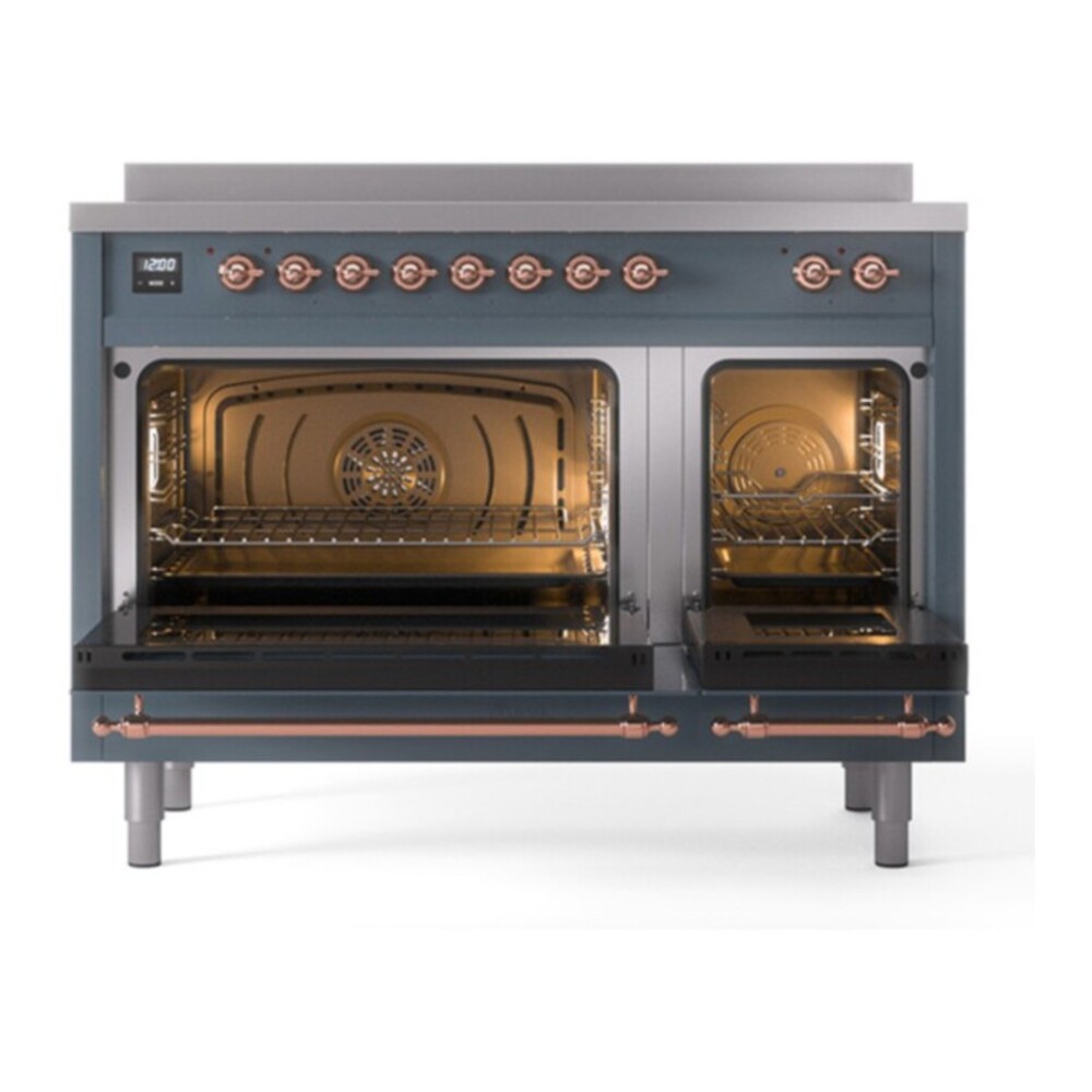 Nostalgie range cookers integrate highly professional technologies and excellent materials with a classic style that is always inspiring. Undisputed protagonists of the kitchen, they offer a complete choice of sizes (from 30 to 60 inches) and various configurations: you can choose the flush-top induction up to 6 cooking zones with bridge function for 48 inches version, single or double oven, standard colors or RAL colors on request, various finishes and accessories. Only available as an option for the Nostalgie collection, Noblesse frames are more than just a detail: they are a fine design feature that frames the front panels, matching the metallic finishes of the handles and knobs. The blind door inspired by the past is another option that elegantly enriches the style of Nostalgie.