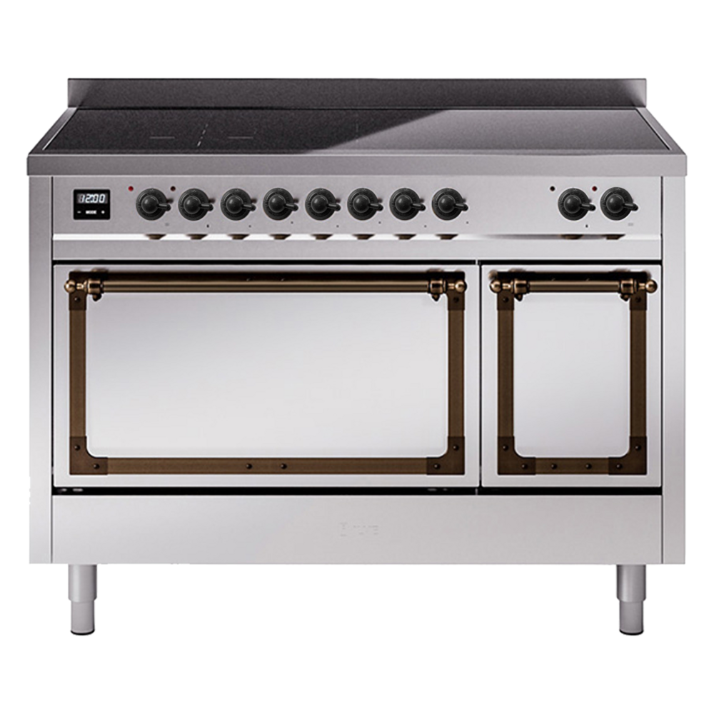 Nostalgie range cookers integrate highly professional technologies and excellent materials with a classic style that is always inspiring. Undisputed protagonists of the kitchen, they offer a complete choice of sizes (from 30 to 60 inches) and various configurations: you can choose the flush-top induction up to 6 cooking zones with bridge function for 48 inches version, single or double oven, standard colors or RAL colors on request, various finishes and accessories. Only available as an option for the Nostalgie collection, Noblesse frames are more than just a detail: they are a fine design feature that frames the front panels, matching the metallic finishes of the handles and knobs. The blind door inspired by the past is another option that elegantly enriches the style of Nostalgie.