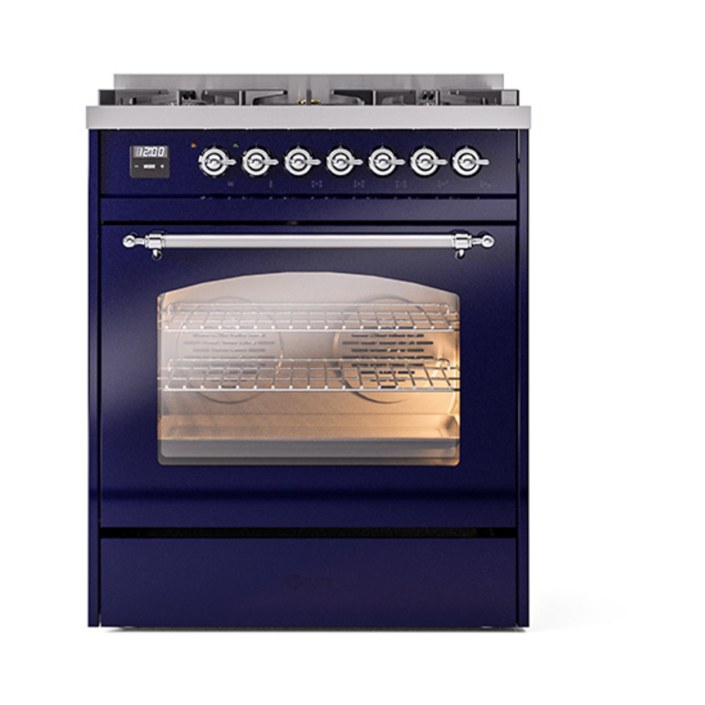 ILVE UP30NMPMBCLP Nostalgie II 30 inch Dual Fuel Range with 5 Burners (Liquid Propane, Triple Glass Door, Midnight Blue, Chrome)
