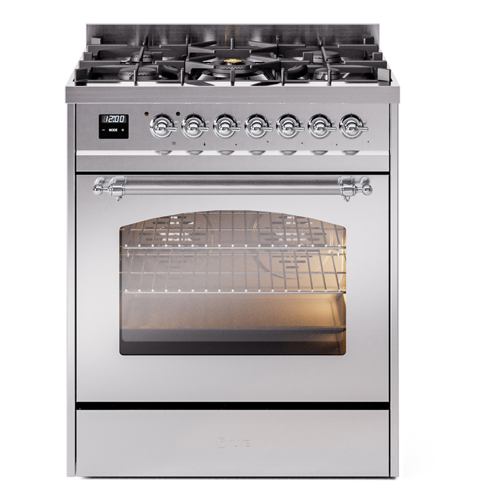 ILVE UP30NMPSSCLP Nostalgie II 30 inch Dual Fuel Range with 5 Burners (Liquid Propane, Triple Glass Door, Stainless Steel, Chrome)