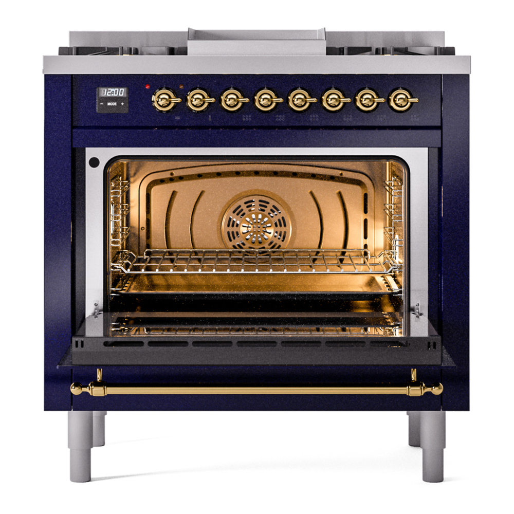 Nostalgie range cookers integrate highly professional technologies and excellent materials with a classic style that is always inspiring. Undisputed protagonists of the kitchen, they offer a complete choice of sizes (from 30 to 60 inches) and various configurations: you can choose the flush-top induction up to 6 cooking zones with bridge function for 48 inches version, single or double oven, standard colors or RAL colors on request, various finishes and accessories. Only available as an option for the Nostalgie collection, Noblesse frames are more than just a detail: they are a fine design feature that frames the front panels, matching the metallic finishes of the handles and knobs. The blind door inspired by the past is another option that elegantly enriches the style of Nostalgie.