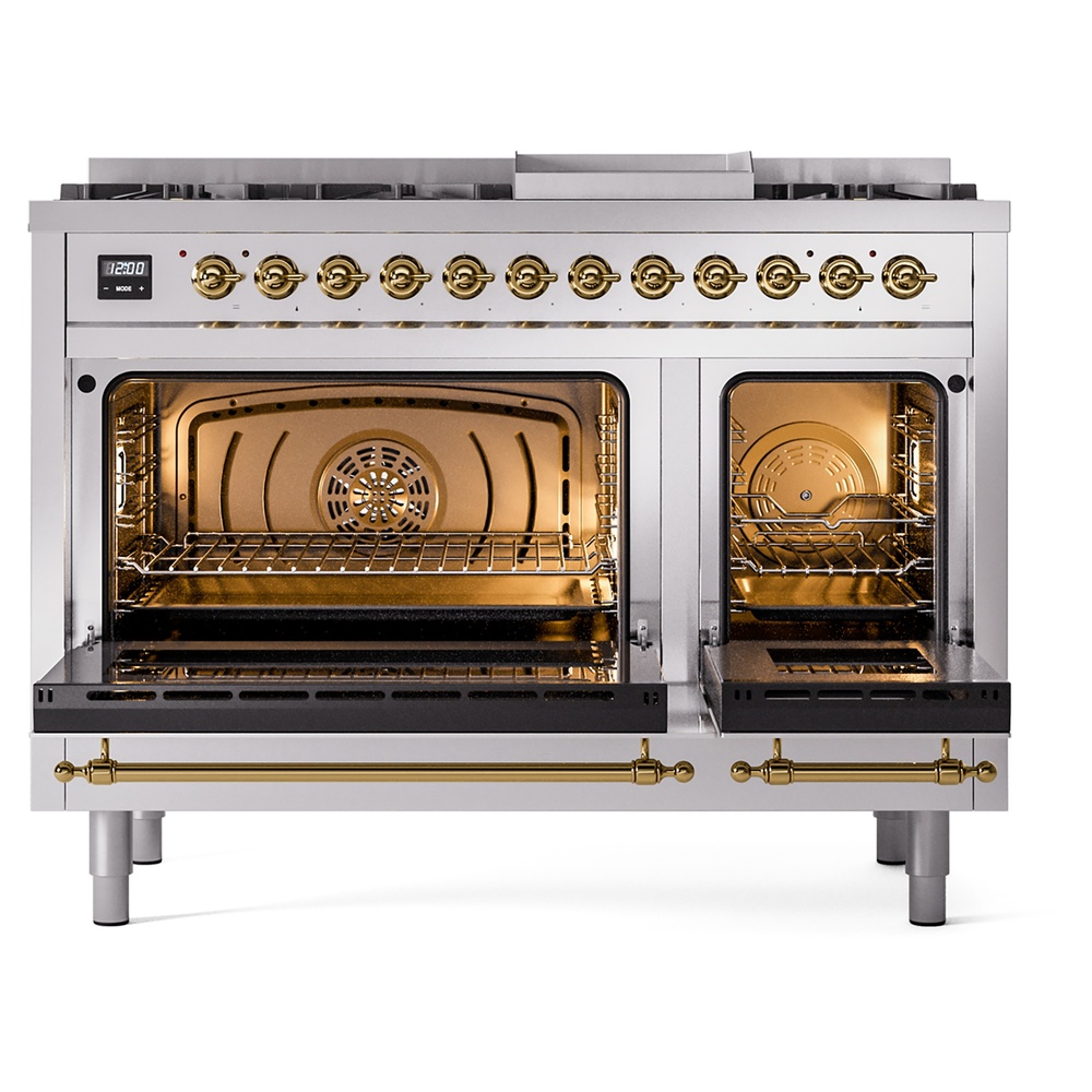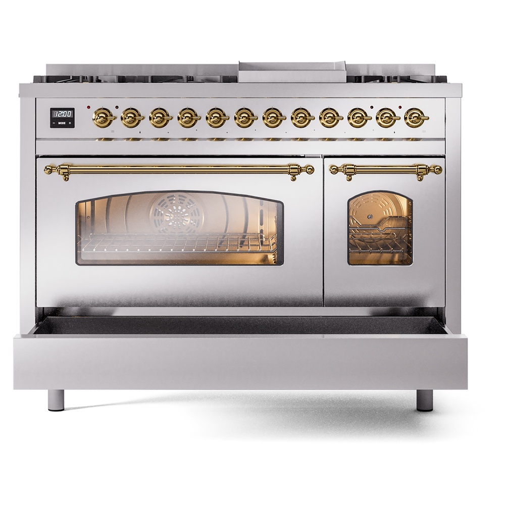 Any single or double combination oven you choose, will provide you with all the space you need, even for large dishes. Our 48-inch range has an oven capacity up to 4 cubic feet.