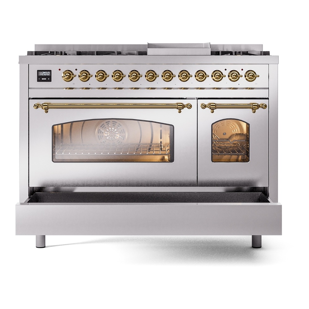 Any single or double combination oven you choose, will provide you with all the space you need, even for large dishes. Our 48-inch range has an oven capacity up to 4 cubic feet.