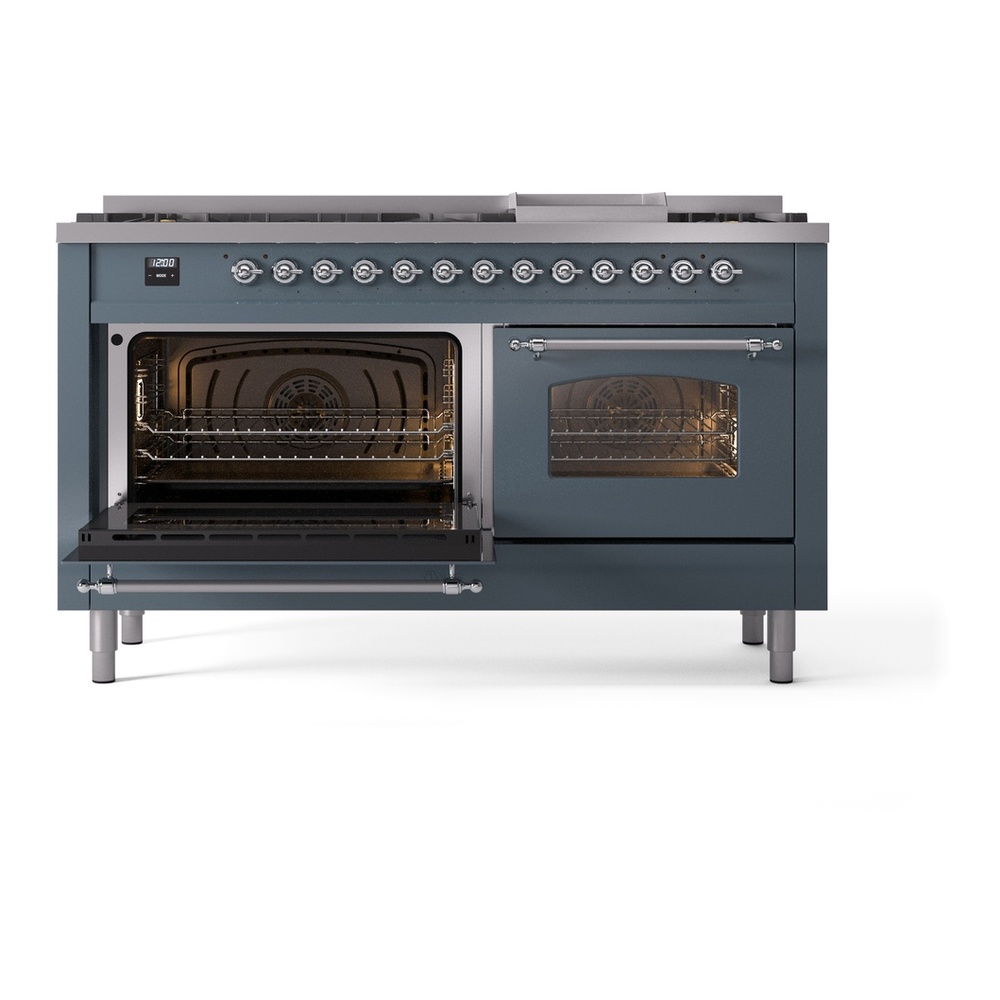 Nostalgie range cookers integrate highly professional technologies and excellent materials with a classic style that is always inspiring. Undisputed protagonists of the kitchen, they offer a complete choice of sizes (from 30 to 60 inches) and various configurations: you can choose the flush-top induction up to 6 cooking zones with bridge function for 48 inches version, single or double oven, standard colors or RAL colors on request, various finishes and accessories. Only available as an option for the Nostalgie collection, Noblesse frames are more than just a detail: they are a fine design feature that frames the front panels, matching the metallic finishes of the handles and knobs. The blind door inspired by the past is another option that elegantly enriches the style of Nostalgie.