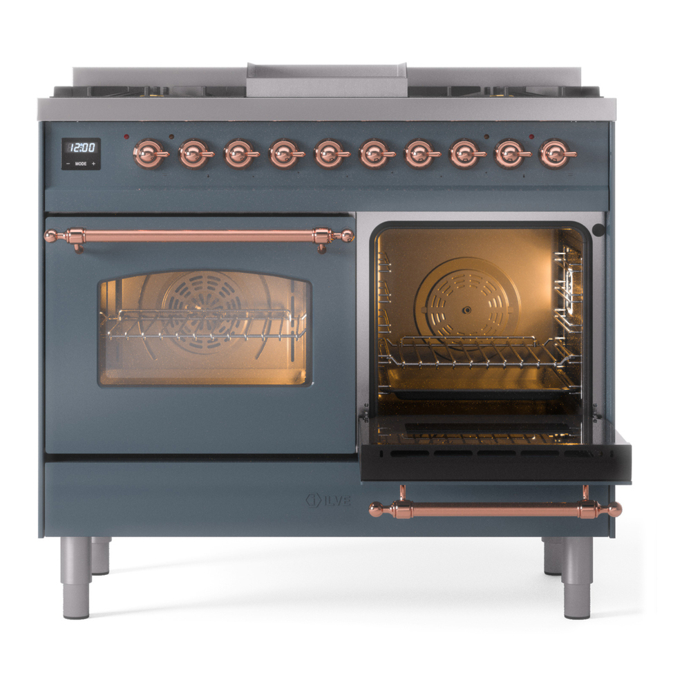 Nostalgie range cookers integrate highly professional technologies and excellent materials with a classic style that is always inspiring. Undisputed protagonists of the kitchen, they offer a complete choice of sizes (from 30 to 60 inches) and various configurations: you can choose the flush-top induction up to 6 cooking zones with bridge function for 48 inches version, single or double oven, standard colors or RAL colors on request, various finishes and accessories. Only available as an option for the Nostalgie collection, Noblesse frames are more than just a detail: they are a fine design feature that frames the front panels, matching the metallic finishes of the handles and knobs. The blind door inspired by the past is another option that elegantly enriches the style of Nostalgie.