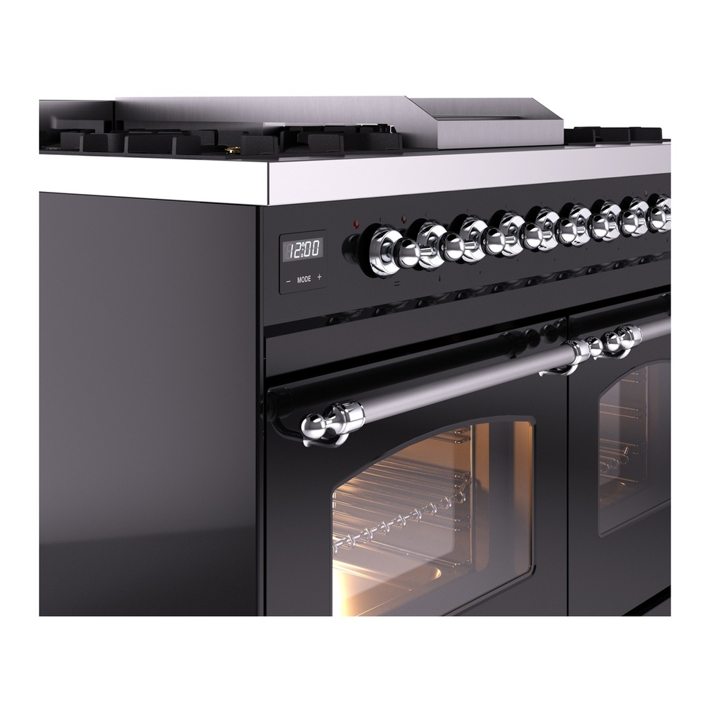 Nostalgie range cookers integrate highly professional technologies and excellent materials with a classic style that is always inspiring. Undisputed protagonists of the kitchen, they offer a complete choice of sizes (from 30 to 60 inches) and various configurations: you can choose the flush-top induction up to 6 cooking zones with bridge function for 48 inches version, single or double oven, standard colors or RAL colors on request, various finishes and accessories. Only available as an option for the Nostalgie collection, Noblesse frames are more than just a detail: they are a fine design feature that frames the front panels, matching the metallic finishes of the handles and knobs. The blind door inspired by the past is another option that elegantly enriches the style of Nostalgie.