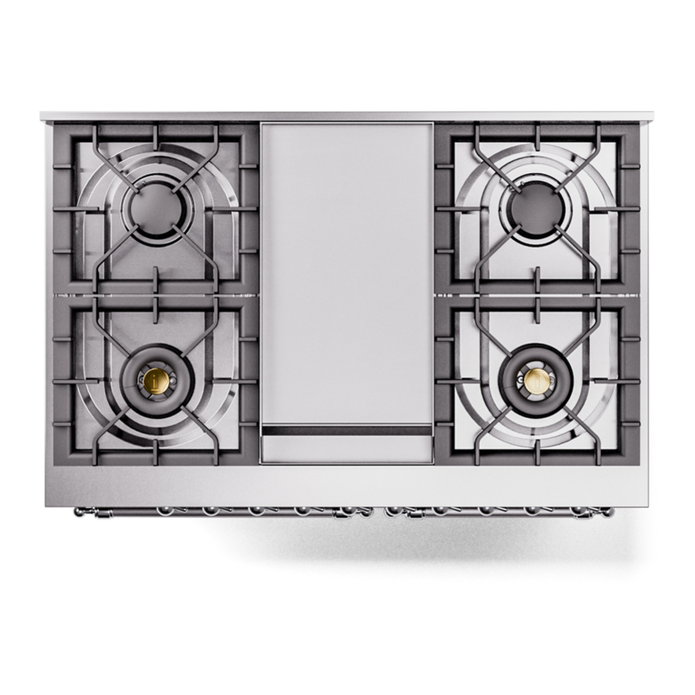 Nostalgie range cookers integrate highly professional technologies and excellent materials with a classic style that is always inspiring. Undisputed protagonists of the kitchen, they offer a complete choice of sizes (from 30 to 60 inches) and various configurations: you can choose the flush-top induction up to 6 cooking zones with bridge function for 48 inches version, single or double oven, standard colors or RAL colors on request, various finishes and accessories. Only available as an option for the Nostalgie collection, Noblesse frames are more than just a detail: they are a fine design feature that frames the front panels, matching the metallic finishes of the handles and knobs. The blind door inspired by the past is another option that elegantly enriches the style of Nostalgie.