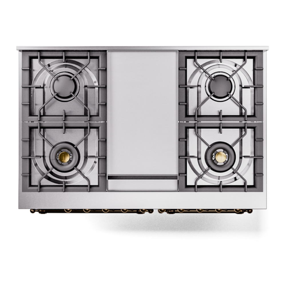 Nostalgie range cookers integrate highly professional technologies and excellent materials with a classic style that is always inspiring. Undisputed protagonists of the kitchen, they offer a complete choice of sizes (from 30 to 60 inches) and various configurations: you can choose the flush-top induction up to 6 cooking zones with bridge function for 48 inches version, single or double oven, standard colors or RAL colors on request, various finishes and accessories. Only available as an option for the Nostalgie collection, Noblesse frames are more than just a detail: they are a fine design feature that frames the front panels, matching the metallic finishes of the handles and knobs. The blind door inspired by the past is another option that elegantly enriches the style of Nostalgie.