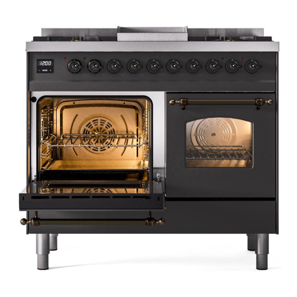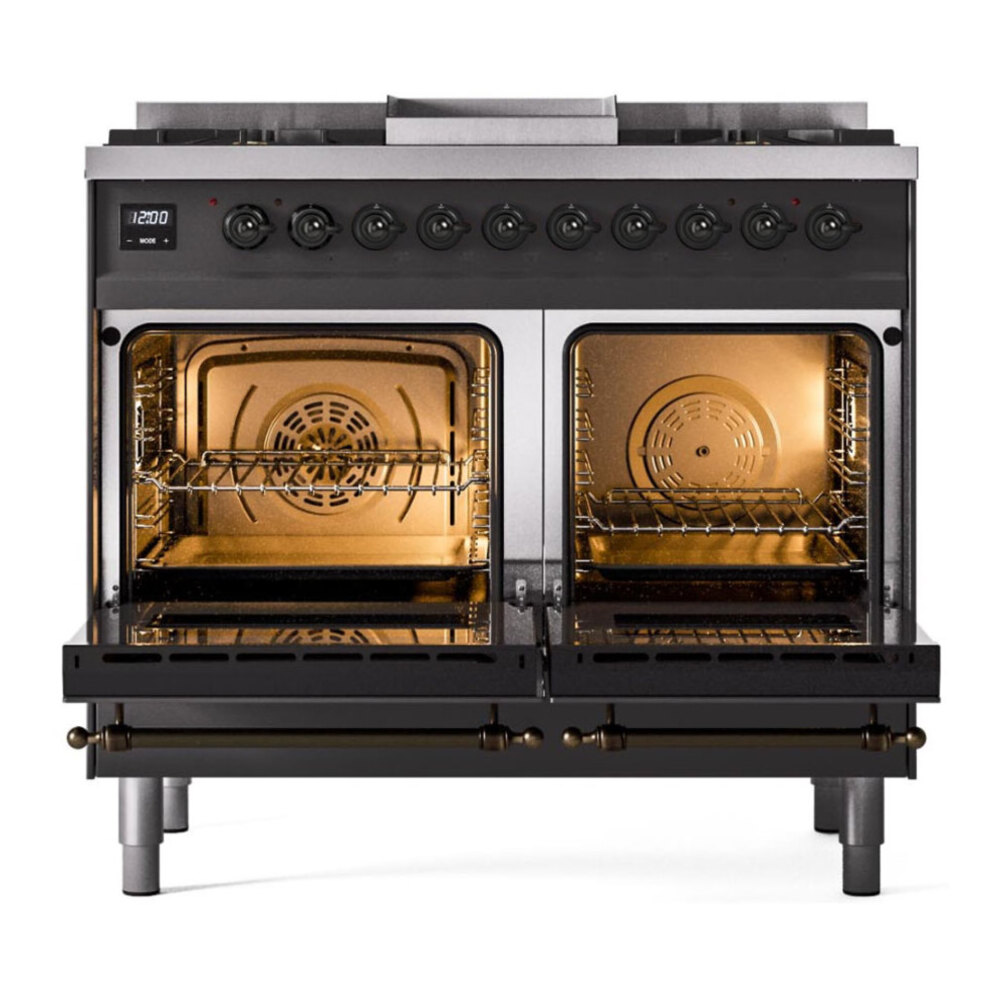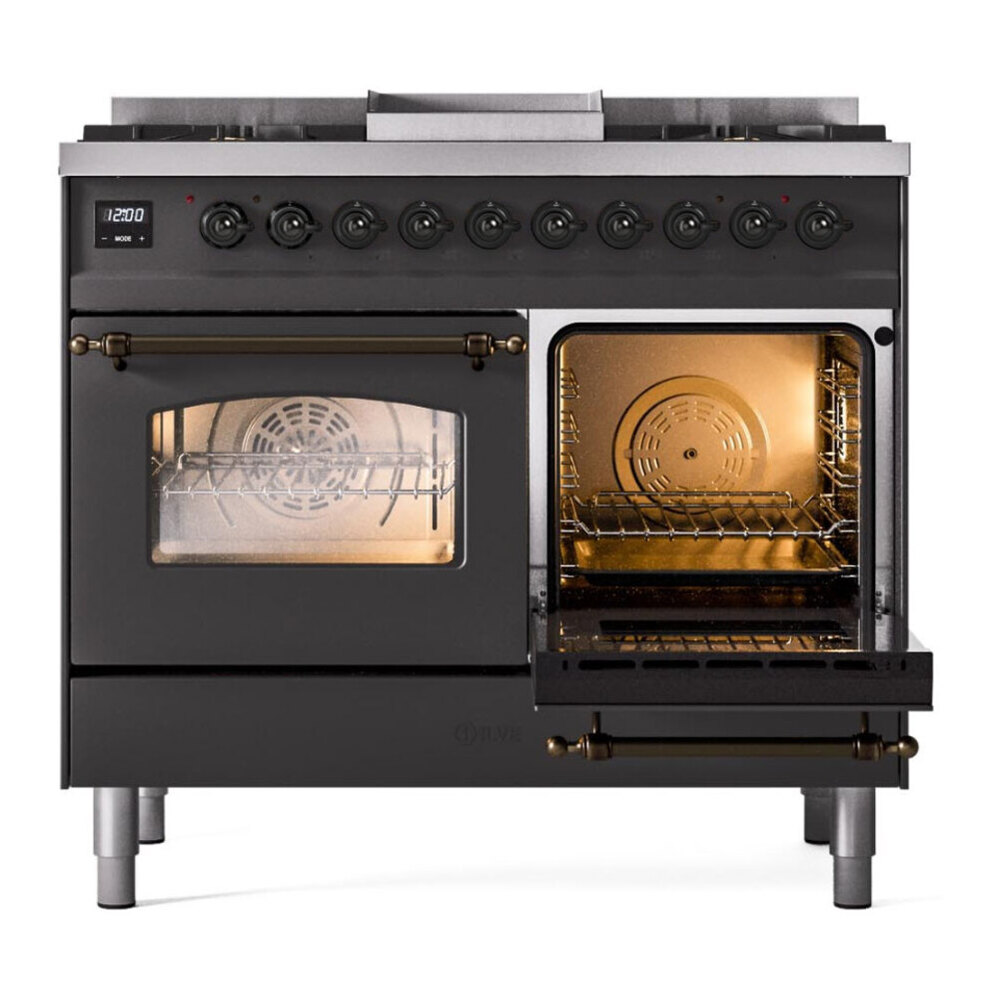 ILVE UPD40FNMPMGB Nostalgie II 40 inch Dual Fuel Range with Double Ovens, 6 Burners and Griddle (Natural Gas, Triple Glass Door, Graphite Matte, Burnished)