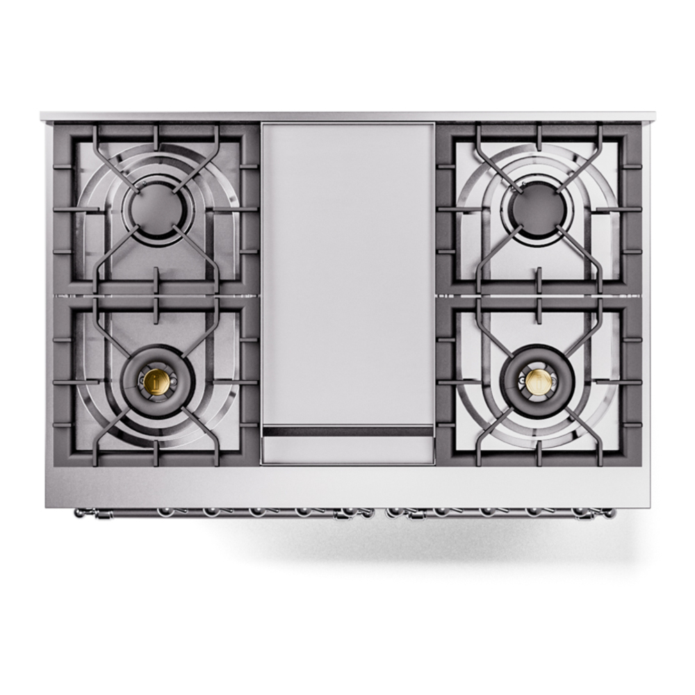 Nostalgie range cookers integrate highly professional technologies and excellent materials with a classic style that is always inspiring. Undisputed protagonists of the kitchen, they offer a complete choice of sizes (from 30 to 60 inches) and various configurations: you can choose the flush-top induction up to 6 cooking zones with bridge function for 48 inches version, single or double oven, standard colors or RAL colors on request, various finishes and accessories. Only available as an option for the Nostalgie collection, Noblesse frames are more than just a detail: they are a fine design feature that frames the front panels, matching the metallic finishes of the handles and knobs. The blind door inspired by the past is another option that elegantly enriches the style of Nostalgie.