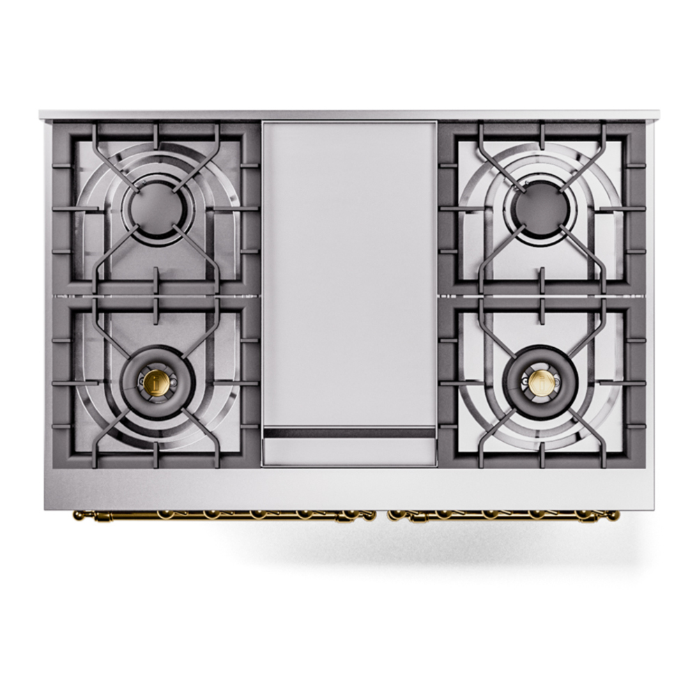Nostalgie range cookers integrate highly professional technologies and excellent materials with a classic style that is always inspiring. Undisputed protagonists of the kitchen, they offer a complete choice of sizes (from 30 to 60 inches) and various configurations: you can choose the flush-top induction up to 6 cooking zones with bridge function for 48 inches version, single or double oven, standard colors or RAL colors on request, various finishes and accessories. Only available as an option for the Nostalgie collection, Noblesse frames are more than just a detail: they are a fine design feature that frames the front panels, matching the metallic finishes of the handles and knobs. The blind door inspired by the past is another option that elegantly enriches the style of Nostalgie.