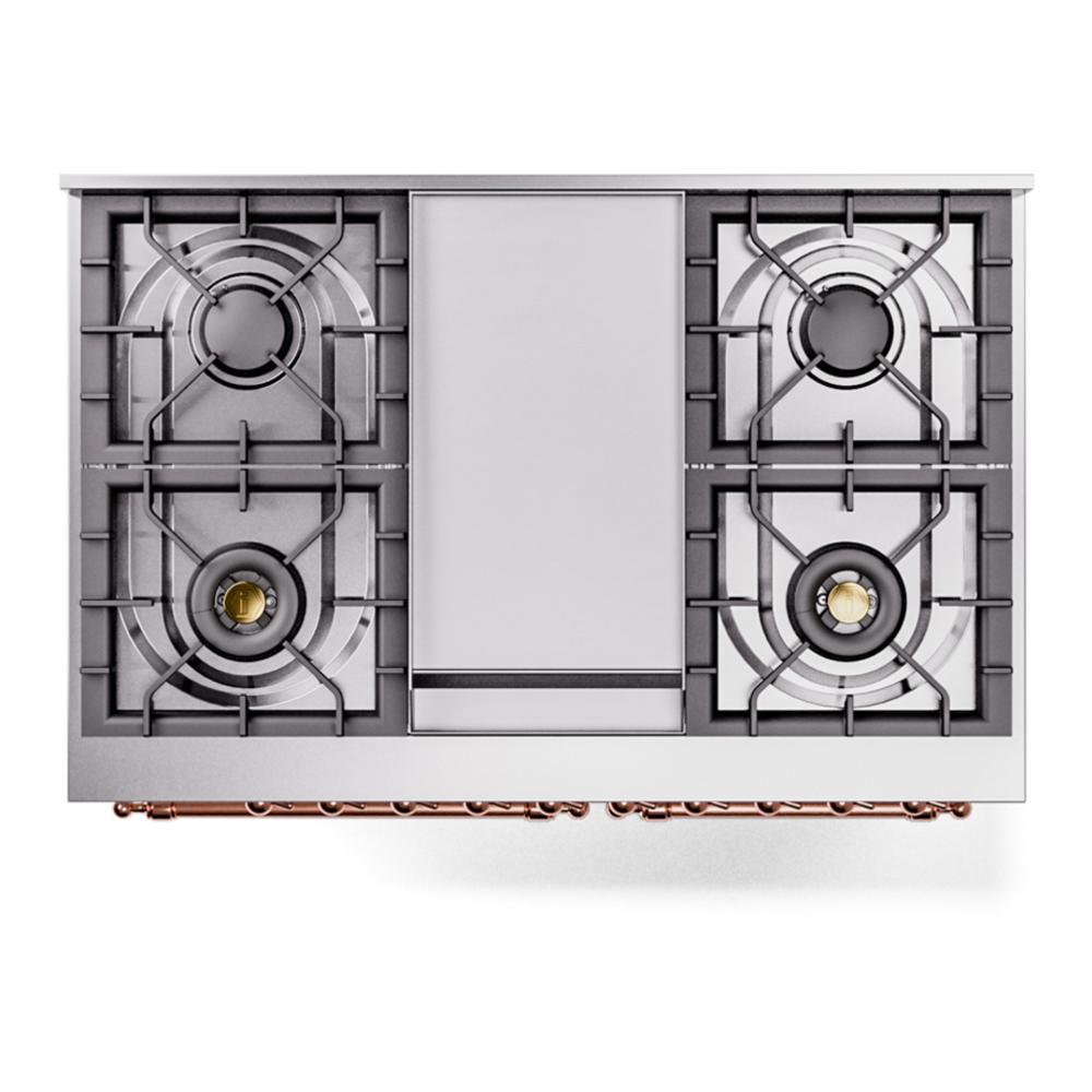 Nostalgie range cookers integrate highly professional technologies and excellent materials with a classic style that is always inspiring. Undisputed protagonists of the kitchen, they offer a complete choice of sizes (from 30 to 60 inches) and various configurations: you can choose the flush-top induction up to 6 cooking zones with bridge function for 48 inches version, single or double oven, standard colors or RAL colors on request, various finishes and accessories. Only available as an option for the Nostalgie collection, Noblesse frames are more than just a detail: they are a fine design feature that frames the front panels, matching the metallic finishes of the handles and knobs. The blind door inspired by the past is another option that elegantly enriches the style of Nostalgie.