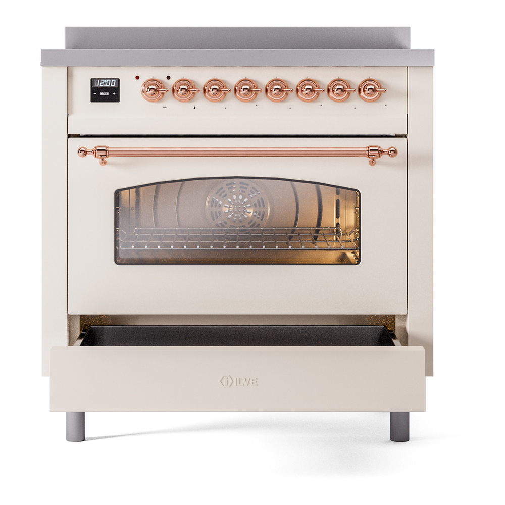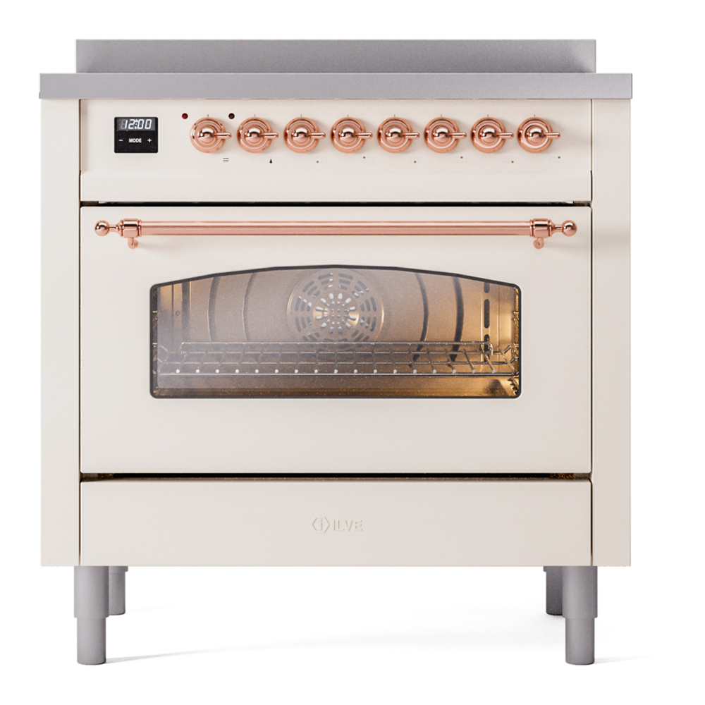 ILVE UPI366NMPAWG Nostalgie II 36 inch Induction Range with 6 Elements (Triple Glass Door, Antique White, Brass)