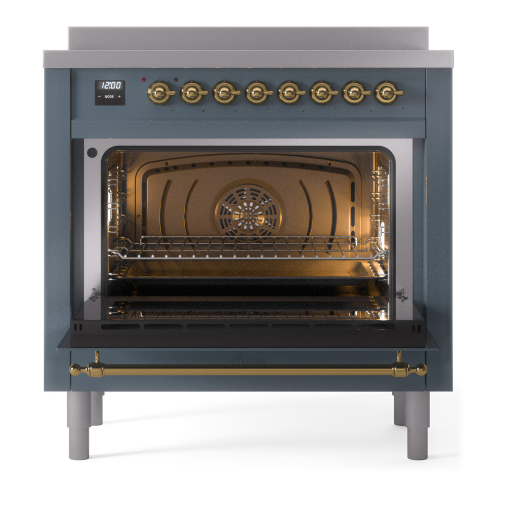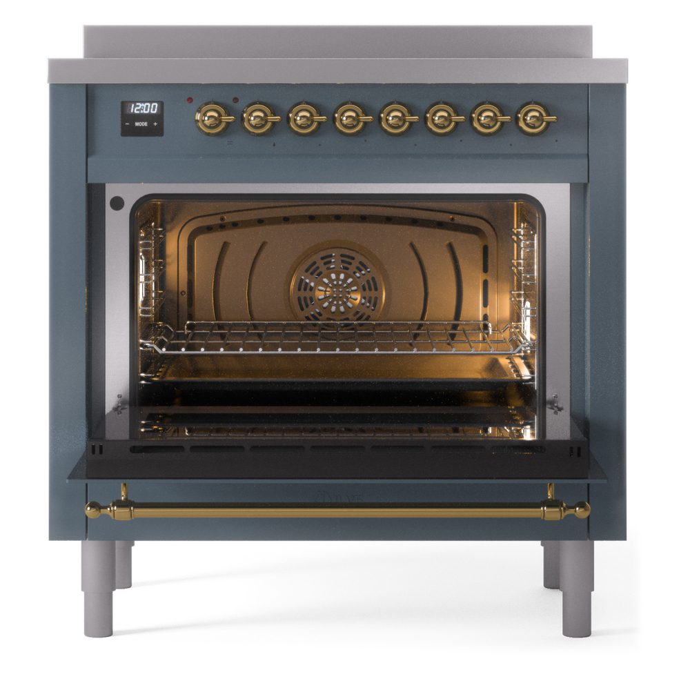 Nostalgie range cookers integrate highly professional technologies and excellent materials with a classic style that is always inspiring. Undisputed protagonists of the kitchen, they offer a complete choice of sizes (from 30 to 60 inches) and various configurations: you can choose the flush-top induction up to 6 cooking zones with bridge function for 48 inches version, single or double oven, standard colors or RAL colors on request, various finishes and accessories. Only available as an option for the Nostalgie collection, Noblesse frames are more than just a detail: they are a fine design feature that frames the front panels, matching the metallic finishes of the handles and knobs. The blind door inspired by the past is another option that elegantly enriches the style of Nostalgie