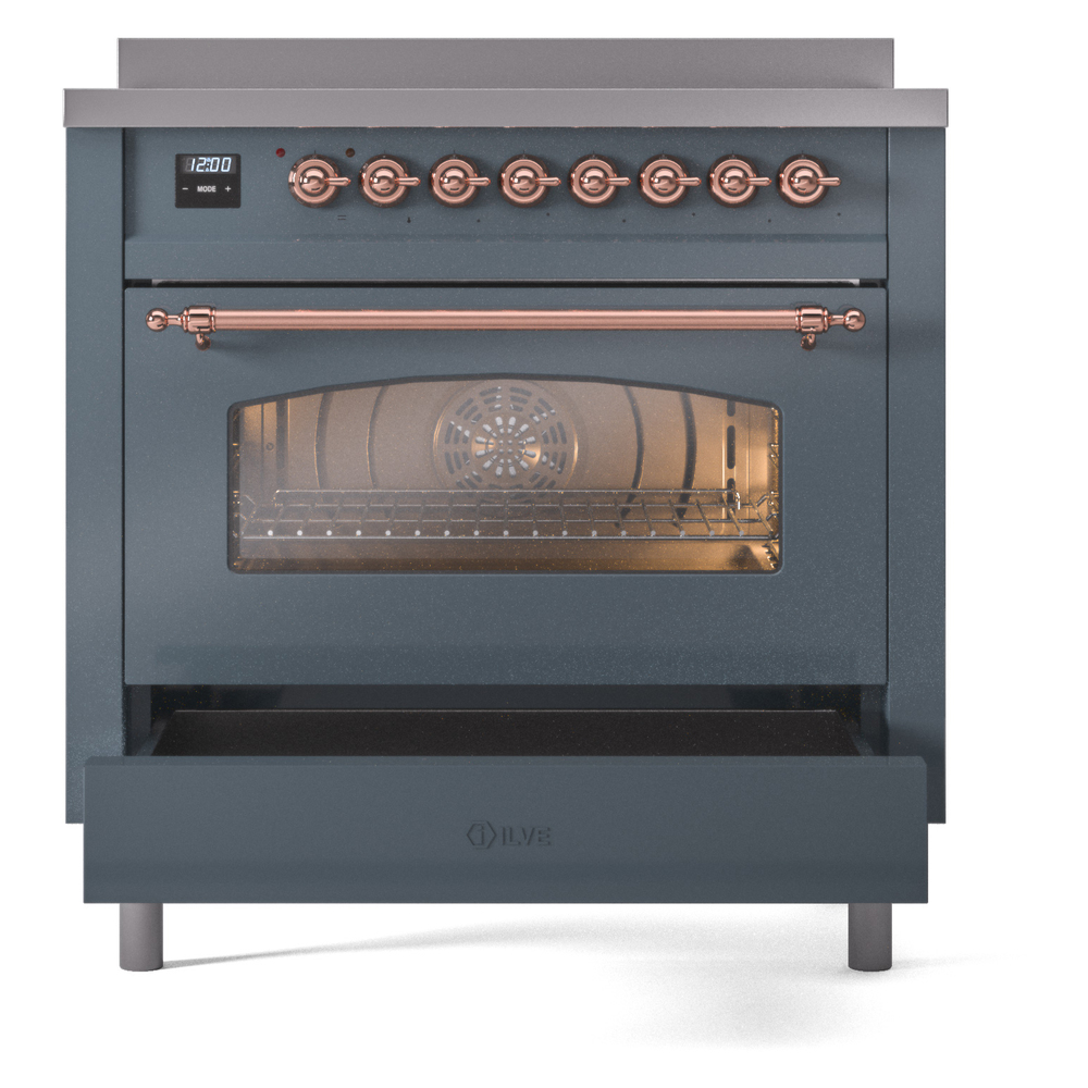 Nostalgie range cookers integrate highly professional technologies and excellent materials with a classic style that is always inspiring. Undisputed protagonists of the kitchen, they offer a complete choice of sizes (from 30 to 60 inches) and various configurations: you can choose the flush-top induction up to 6 cooking zones with bridge function for 48 inches version, single or double oven, standard colors or RAL colors on request, various finishes and accessories. Only available as an option for the Nostalgie collection, Noblesse frames are more than just a detail: they are a fine design feature that frames the front panels, matching the metallic finishes of the handles and knobs. The blind door inspired by the past is another option that elegantly enriches the style of Nostalgie