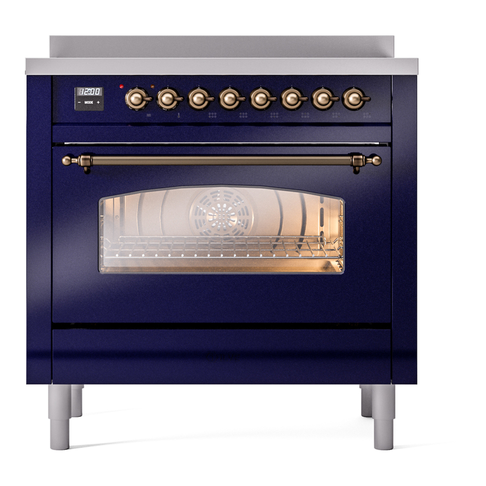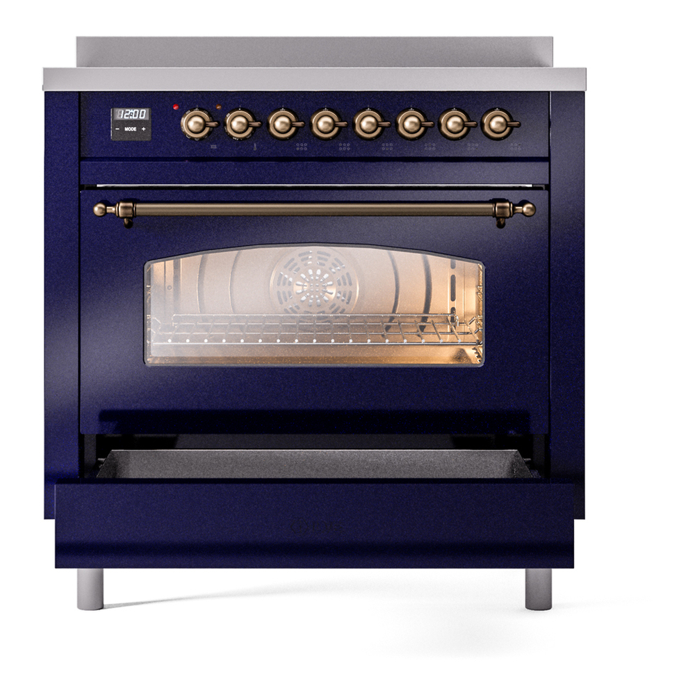 ILVE UPI366NMPMBB Nostalgie II 36 inch Induction Range with 6 Elements (Triple Glass Door, Midnight Blue, Burnished)