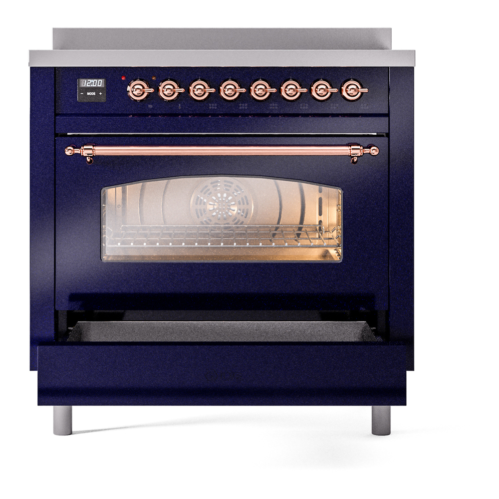 ILVE UPI366NMPMBP Nostalgie II 36 inch Induction Range with 6 Elements (Triple Glass Door, Midnight Blue, Copper)