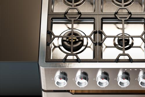 Unique design that combines the technical features of professional kitchens with the Italian culture of design, Panoramagic range cookers come in three models, all with a 4.3-inch touch screen: 48 inches with double oven and precise temperature control, 36 inches with 6 burners or with induction cooktop (hob) with 6 zones. The gas cooktops (hobs) use dual burners up to 20000 BTU as standard and a highly professional nanotechnological treatment to achieve a non-stick surface with a total black finish.