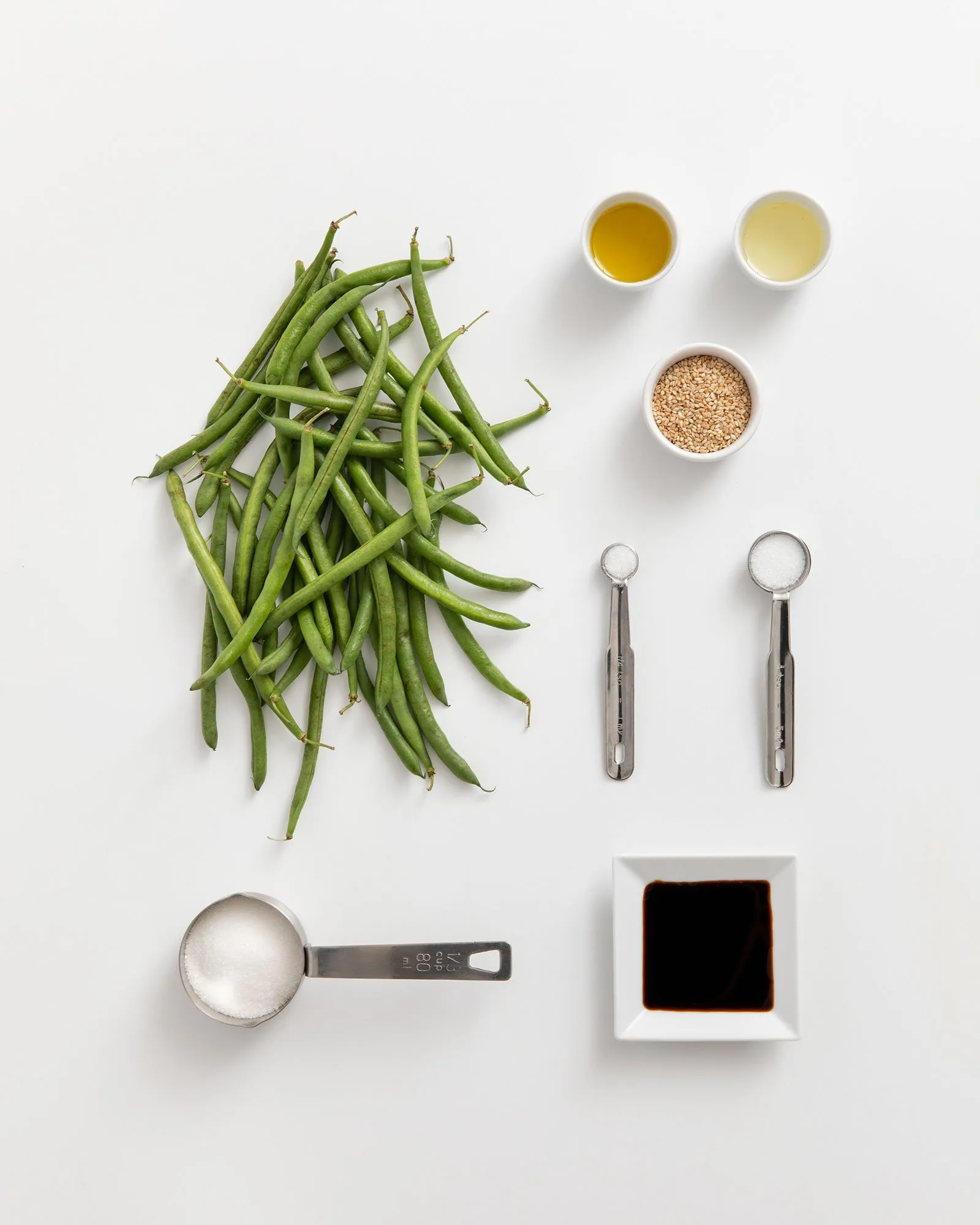 Prepare a mixture of water, balanced salt solution, extra virgin olive oil, soy sauce and sesame seeds. Mix the green beans with the preserving liquid and put everything in the cooking bag and set the maximum vacuum and seal.
